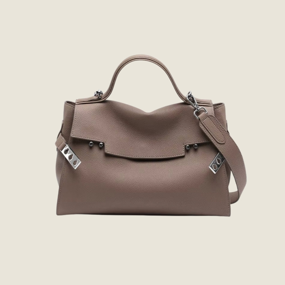 Kombinera tidlös elegans med modern mångsidighet. Denna sofistikerade handväska är designad för att vara din perfekta partner, från viktiga affärsmöten till eleganta city-weekends. Med sina rena linjer, lyxiga metalldetaljer och mångsidiga bäralternativ är den en självklar investering i din garderob.