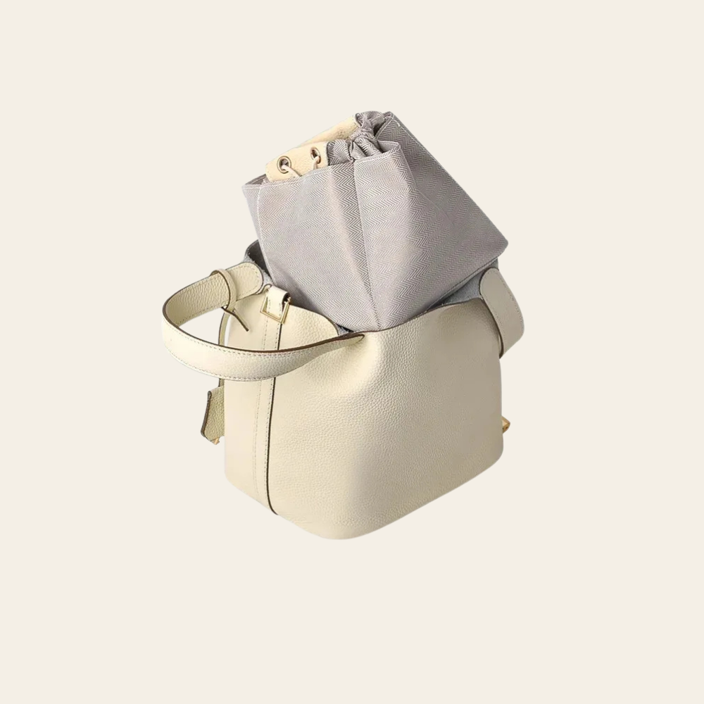 Den är utrustad Bestå av två delar, ett rymligt huvudfack samt en praktisk mini bucket-väska med mjuk, strukturerad form som kan tas ut vid behov, vilket underlättar både organisering och rengöring.